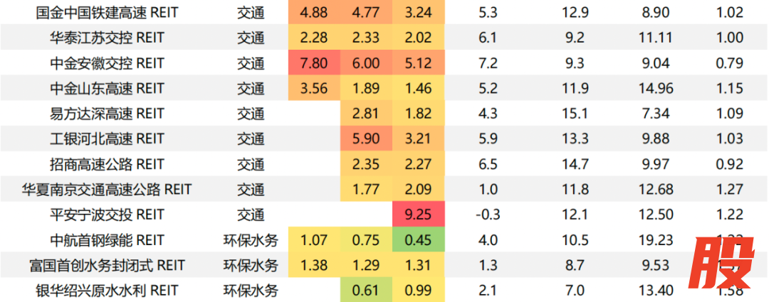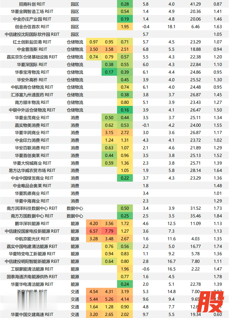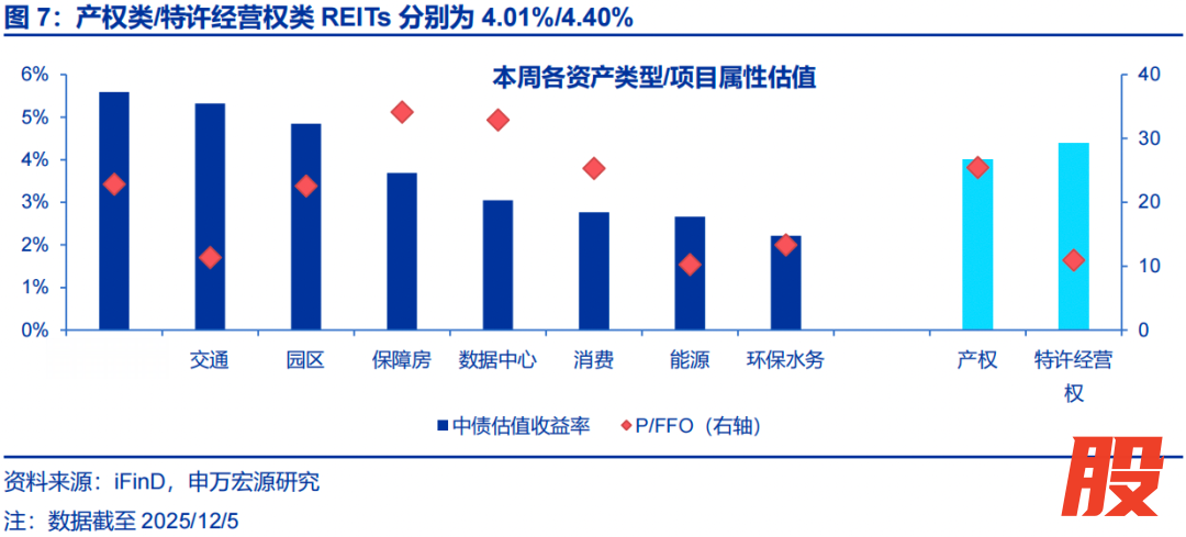 估值:从中债估值收益率来看,产权类/特许经营权类REITs分别为4.01%/4.40%,仓储物流(5.59%)、交通(5.32%)、园区(4.85%)板块位列前三。